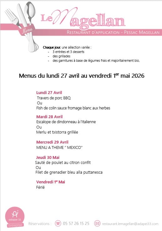 Le restaurant Le Magellan situé à Pessac propose aux entreprises la location d’une salle de réunion équipée (vidéo projecteur, wifi…) d’une capacité de 25 personnes.